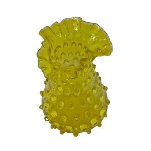 Hobnail Vase Canary Glass Fluted Ruffled Top Rim Vintage 60s