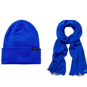 Wrap yourself in vibrant warmth with this stylish Calvin Klein set! This bold blue beanie and scarf combo is perfect for making a statement while staying cozy. It's a chic way to elevate your winter wardrobe with a pop of color.