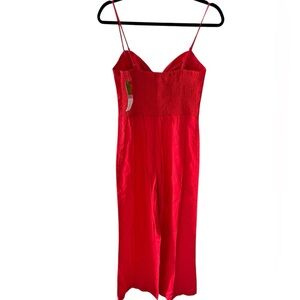 New, size 4 red, linen blend jumpsuit with adjustable straps, sweetheart neckline and side zipper closure. Smocked back. Smoke free home, ships next day.