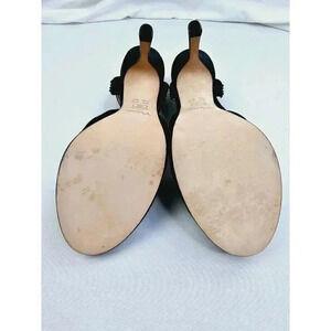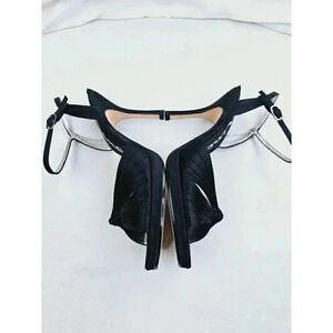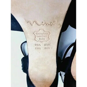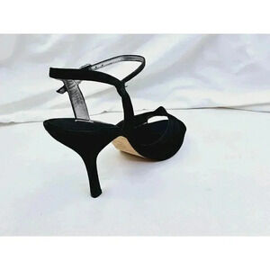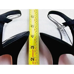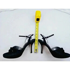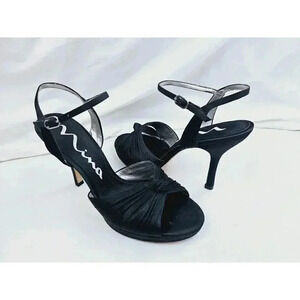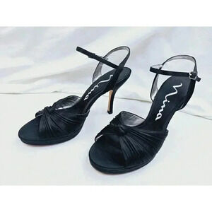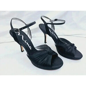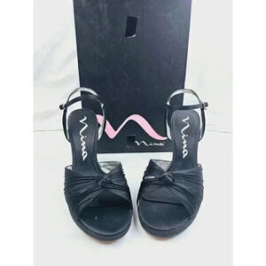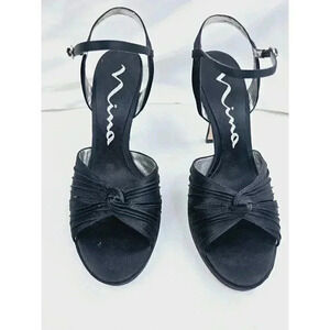 Nina Size 8.5M Women's Black Luster "Cupcake" Open Toe Ankle Strap Pumps