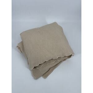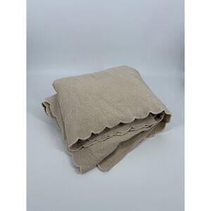 Beige colored queen size The Company Store quilt. Made of 100% Cotton. Used but in excellent condition. Scalloped edges with a ribbed floral pattern.