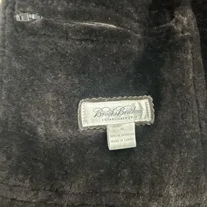 This Brooks Brothers shearling coat in brown shearling is a stylish and warm outerwear option for the winter season. The coat features buttons in a classic design with a size M, suitable for casual occasions. The high-quality shearling and Brooks Brother’s brand ensure both durability and a fashionable look, making it a versatile addition to any wardrobe.