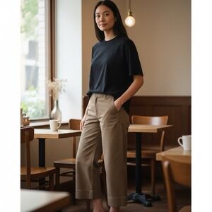 Eileen Fisher Wide Leg Stretch Denim Pants Khaki Women's S Organic Cotton