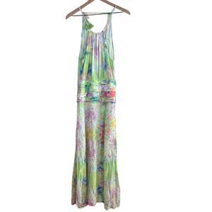 Keywords: Farm Rio maxi dress, Farm Rio tie dye dress, Farm Rio ruffle dress, colorful maxi dress, Brazil designer dress, rare Farm Rio dress, women's resort wear