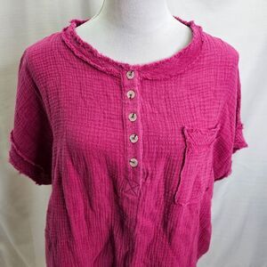 La Miel Pink Gauze Henley The Molly Top Size Medium
