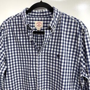 Brooks Brothers Red Fleece Button Down Shirt Men's Size Large Navy Blue Gingham