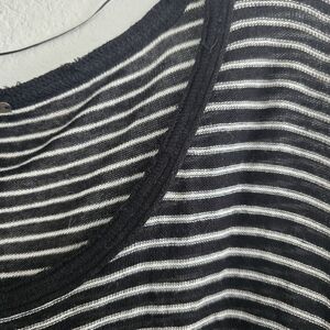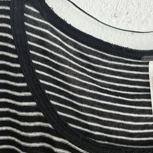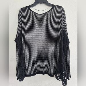 Free People Linen Blend Crochet Love Me Do Blouse Top Sz M Stripe Oversize