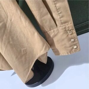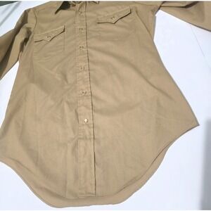 The Anthoneys VTG Tan Long Sleeve Button Up Shirt is a vintage-inspired piece perfect for casual, work, or travel occasions. Made from a blend of polyester and cotton, this shirt features a solid brown color, collared neckline, and button closure. With a chest size of 20.5 inches and a size 32 fit, this shirt is both stylish and comfortable for year-round wear.
