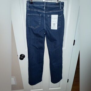 RISEN Women’s Dark Blue Flare Jeans with Tan Accents