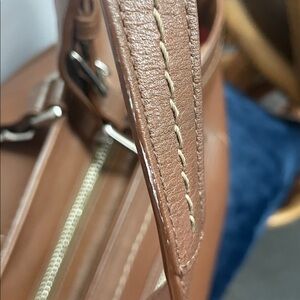 Vintage Great used condition whiskey smooth natural leather Coach ‘Hamptons’ carryall shoulder bag. This shoulder bag shows a few signs of use. All flaws are pictured & written in this description. The leather shoulder straps are in excellent condition. There is a small spot on the edge coat. It is pictured. No rubbing or separation on the straps. They are not removable. On the bottom there are a few spots on the leather. I tried to clean, but they did not come off. No edge rubbing, minor fading. No exterior rips, scratches or odors. The back zip pocket is in excellent condition. No flaws or odors on the lining. The zip top interior is in excellent condition. No flaws or odors. This shoulder bag was made in May 2005. Style #5138. 15”L x 11”H. 8” shoulder drop.