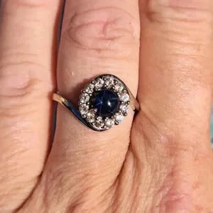 Blue Star Sapphire & White Zircon Halo Ring