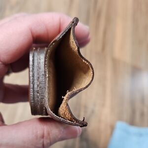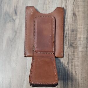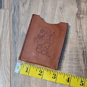 Stylish Disney card sleeve in brown leather. Features iconic character design. Perfect for fans. In very good preowned condition, vintage. See above photos and video. Card holder as well as magnetic money clip holder. (AX)