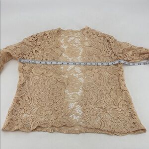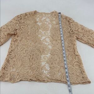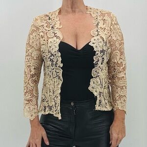 Vintage 70’s Boho Crochet Macrame Lace Floral Cut Out Open Cardigan