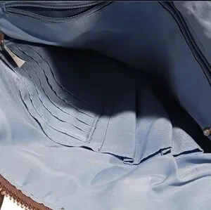 GUC. A few pen marks to interior, minor staining to interior edge. 2 small marks to strap. Please see all photos for condition.