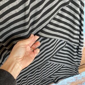 Here is a fun Market & Spruce Brentwood Tiered Black & Gray Striped Dress size medium in good used condition with minimal signs of wear. Measurements are approximately 37-39 inch length, 19.5 inch sleeves and 17 inch width from pit to pit when flat.
