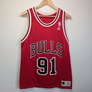 Vintage 90s Champion Dennis Rodman Chicago Bulls Jersey Mens 40 Basketball NBA