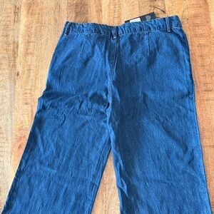 Stylish blue flare jeans. Wide leg design. Comfortable fit.