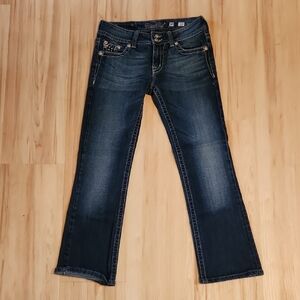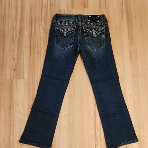Miss Me Dark Blue Boot Cut Jeans with Rhinestone Accents