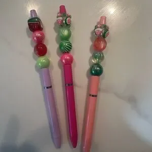 Brighten up your day with this set of colorful beaded pens. Includes all 3 pens set. Handmade.