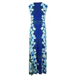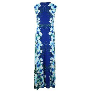 Apt 9 Dress $50 Sz XL Blue Multi Color Floral Knit Maxi Rayon Spandex Dress