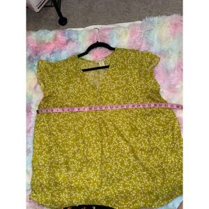 EUC Cynthia Rowley Floral Blouse Green Short Sleeve Size 1X