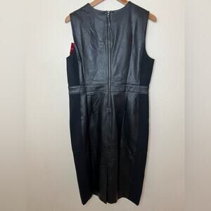 SPANX Faux Leather Combo Panel Knit Midi Sheath Dress Luxe Black NEW Womens XL