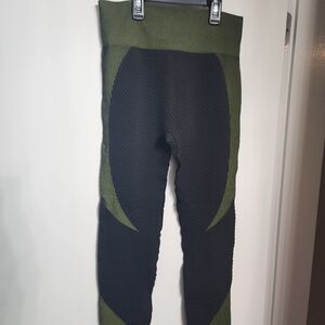 Stylish black and green cropped jacket with a zip-up front and leggings workout set. Features textured fabric and long sleeves. XL