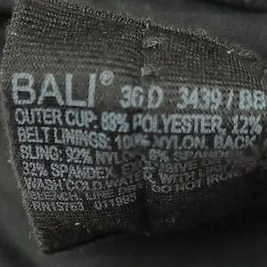 Bali Elegant Black Underwire Bra 36D Underwire
