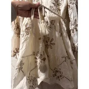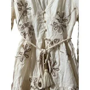 Camellia Embroidered 3D Floral Cottage Mini Dress Women Medium Cream Puff Sleeve Ballon sleeves Peasant Preppy Prairie Cottagecore Tiered Flowy