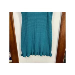Anthropologie Ruffled Pointelle Knit Mini Dress Square Neck Blue Medium