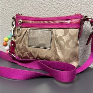 Coach Poppy Fuchsia and Tan Crossbody Bag