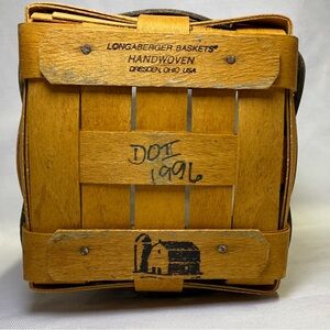The Longaberger 1996 Heartland Small Basket is a handmade, wood storage basket with a rectangular shape and a brown color.