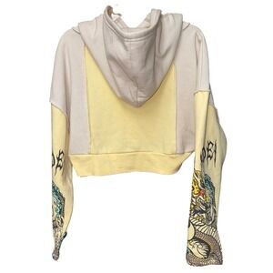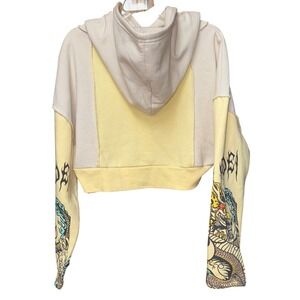 NGOrder Yin Yang Dragon Panel Yellow & Beige Crop Hoodie 12 Graphic Urban Streetwear Fantasy Mythical Y2K