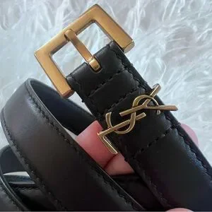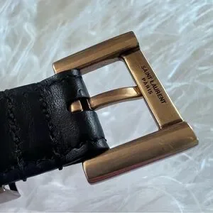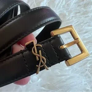 Yves Saint Laurent Cassandre skinny black belt 85 ( 39.5” total length)