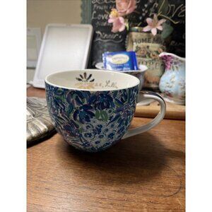 Vintage Lilly Pulitzer Tea Cup Coffee Mug 12 oz Blue Floral Gold Cottage Prairie