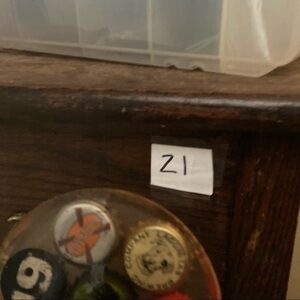 Coasters made with clear epoxy resin and reclaimed bottle caps.