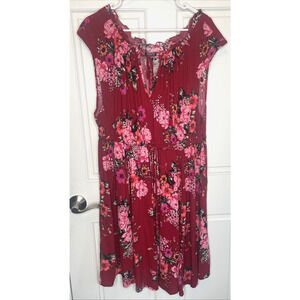 Torrid Women's Boho Tie-Front Keyhole Skater Dress Size 2 Ruffle Peasant Floral