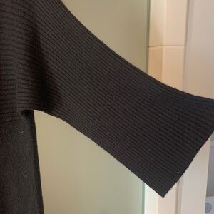 Gorgeous and SOFT! 100% cashmere, fantastic stretch to it. Stay cozy and stylish with this elegant black sweater. Perfect for any occasion.