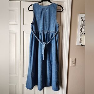 Classicly 90s vintage denim jumper dress with button-down front. Rear tie, cute patch pockets on bust. Great vintage condition, all buttons intact, no rips or holes.