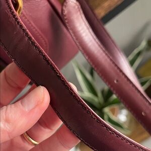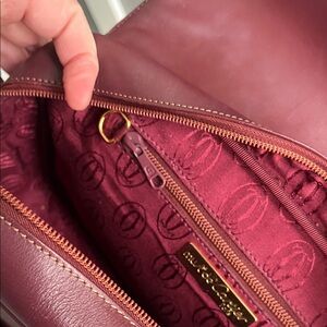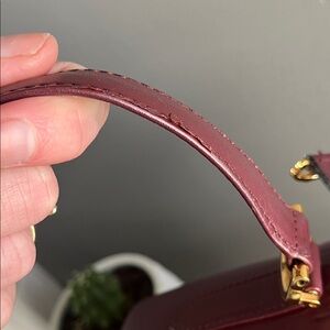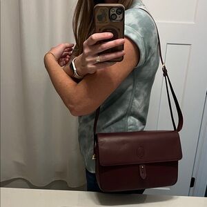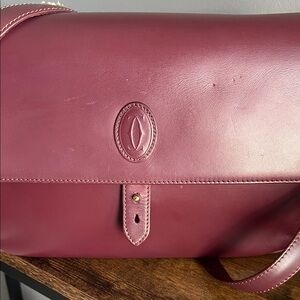 Cartier deep red leather shoulder bag. Perfect for stylish outings. Features elegant design.