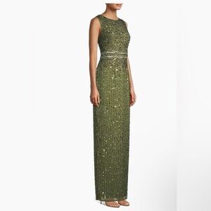 Dazzle in this olive green sequin maxi dress. Perfect for elegant events. Features a shimmering design.