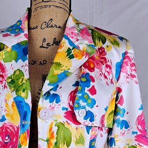 Stunning Floral Sag Harbor Stretch Blazer Jacket Women Size 10 Multi Color Roses