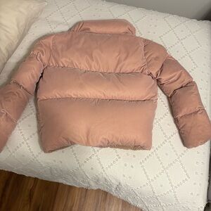 Stylish pink puffer jacket by SAM. Features a cozy design. Perfect for cold weather.