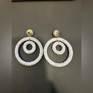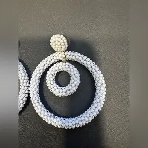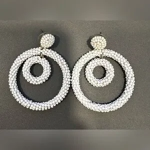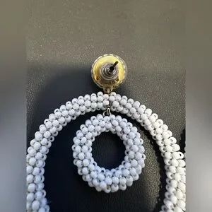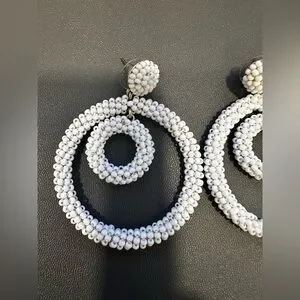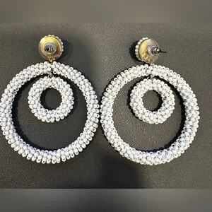 These elegant white beaded hoop earrings add a touch of sophistication to any outfit. Perfect for any occasion.
