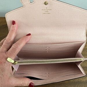 285: Chic and stylish limited edition Louis Vuitton Epi pink leather wallet with floral embellishments. Perfect for adding a touch of elegance to any outfit. This wallet comes with a certificate of authenticity and a Louis Vuitton dust bag.