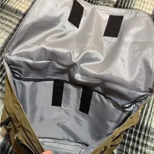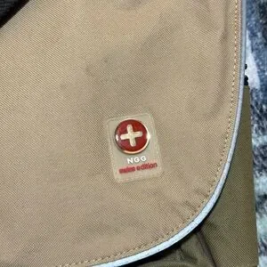 Unbranded canvas messenger bag. Looks sturdy, never used. Small stains around emblem.