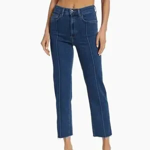 Cut in an ankle-crop silhouette, LE JEAN's Amelia straight-leg jeans are elevated by textured pintuck pleating at the front and a raw hem.