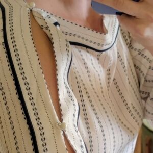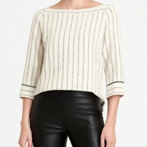 Ann Taylor Cream Stripe Cold Shoulder Black Kimono Sleeve India Top Small