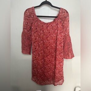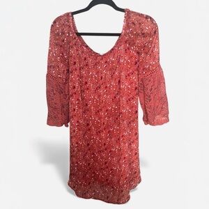 MIAMI Womens Floral Lace Sleeve Dress Size Medium Boho Coral Orange