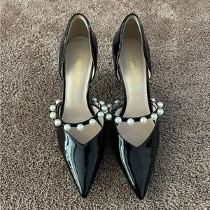 Elegant Black Heels with Pearl Accents